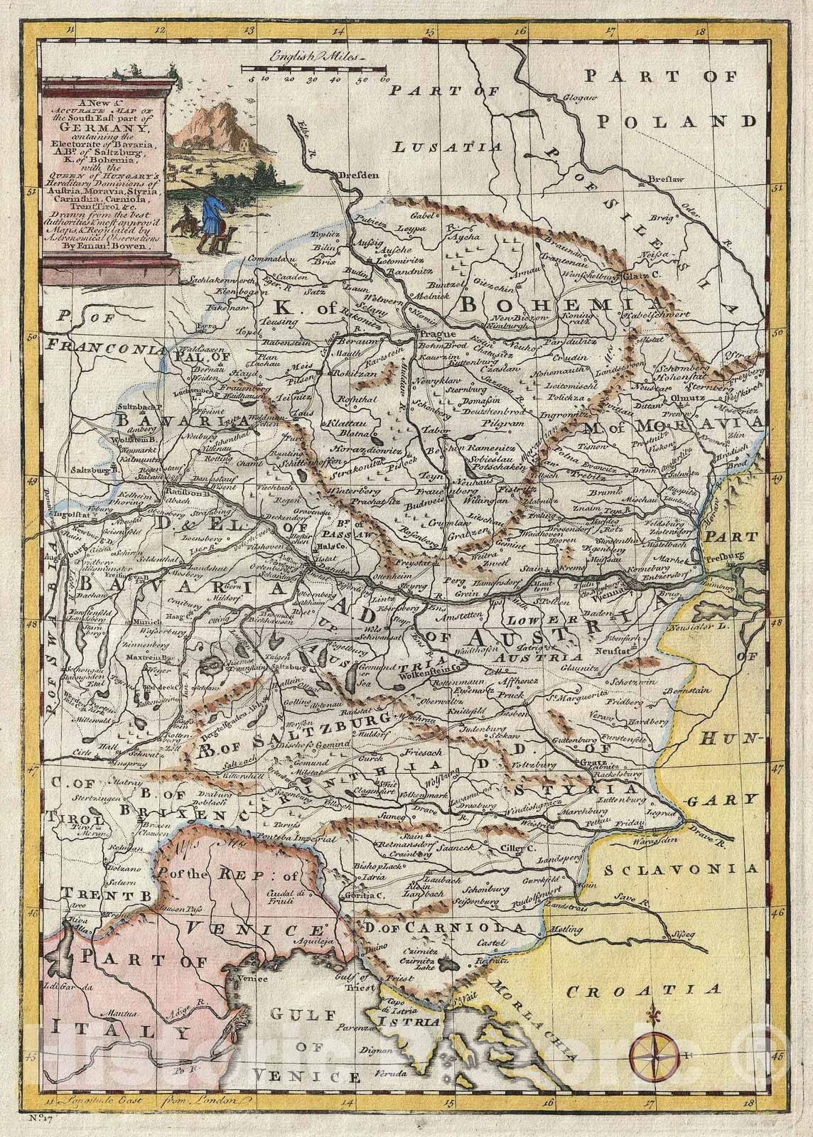 Historic Map : Bohemia and Southeastern Germany "Bavaria and Salzburg", Bowen, 1747, Vintage Wall Art