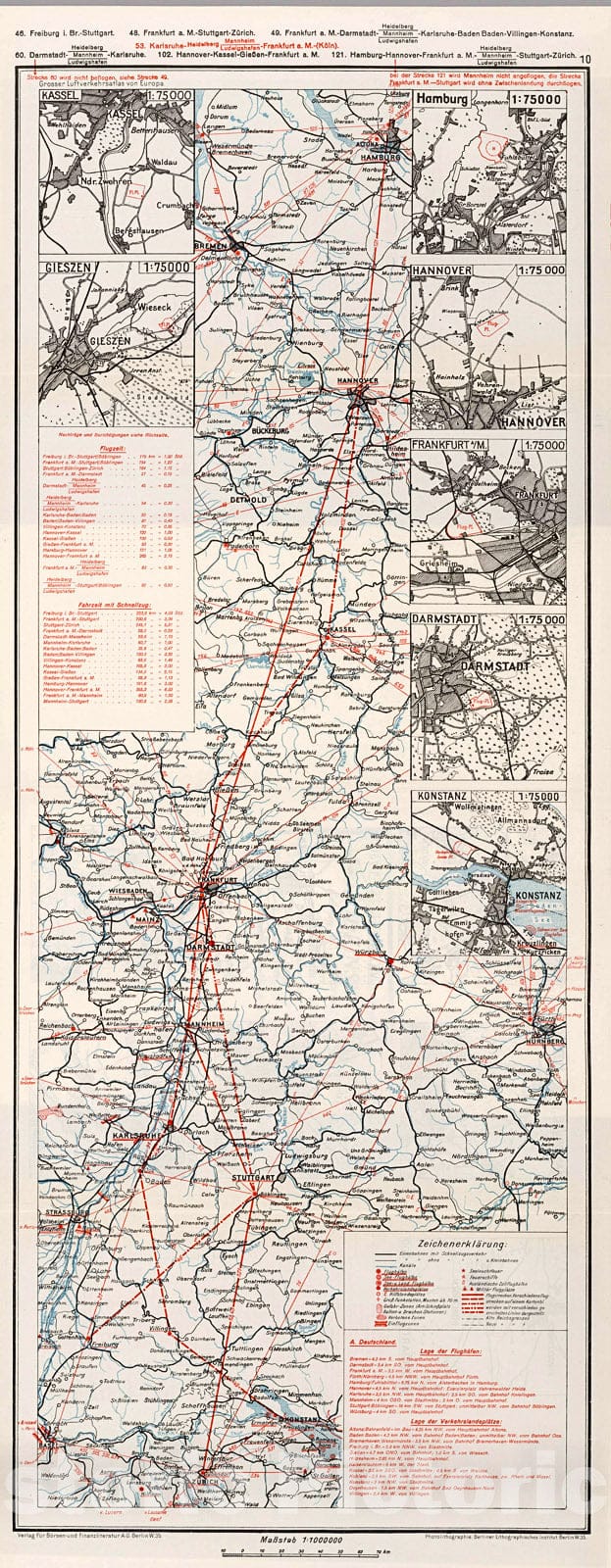 • .Historic Map : Central Germany Air Routes. (insets) (Airport Locations)., 1928, Vintage Wall Decor