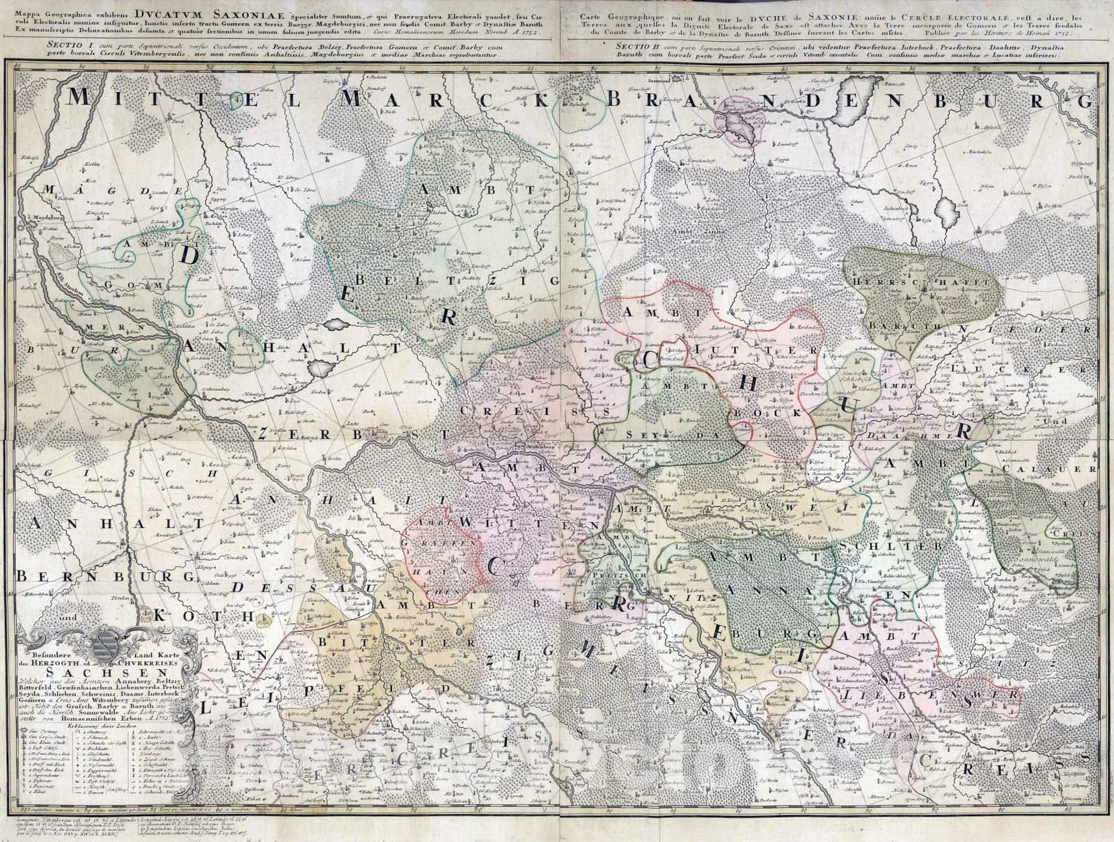 • .Historic Map : Germany, 1752 Herzogth od. Churkreises Sachsen. , Vintage Wall Art