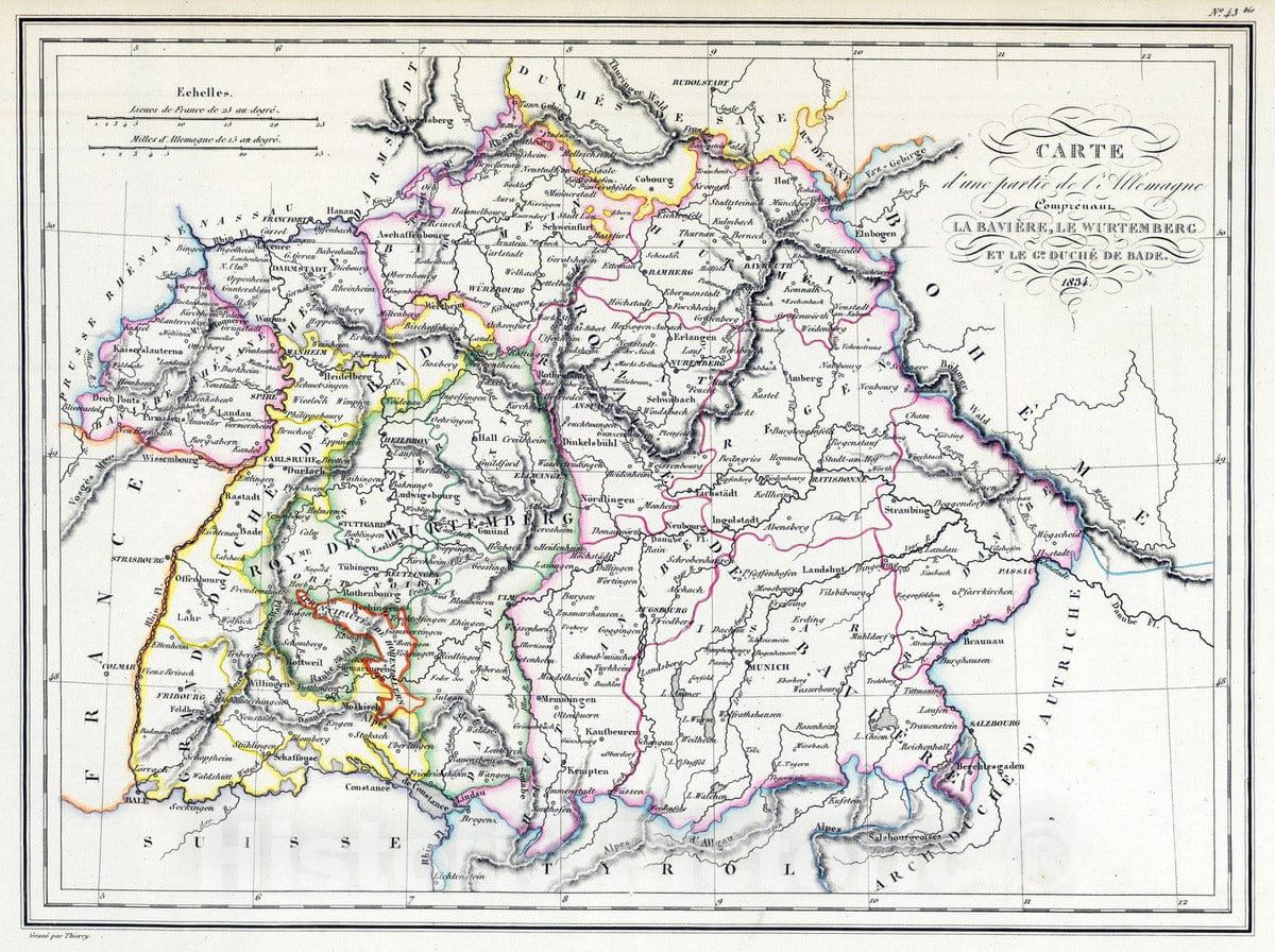 Historic Map : Germany, 1837 La Baviere, le Wurtemberg, et le Gr. Duche de Bade , Vintage Wall Art