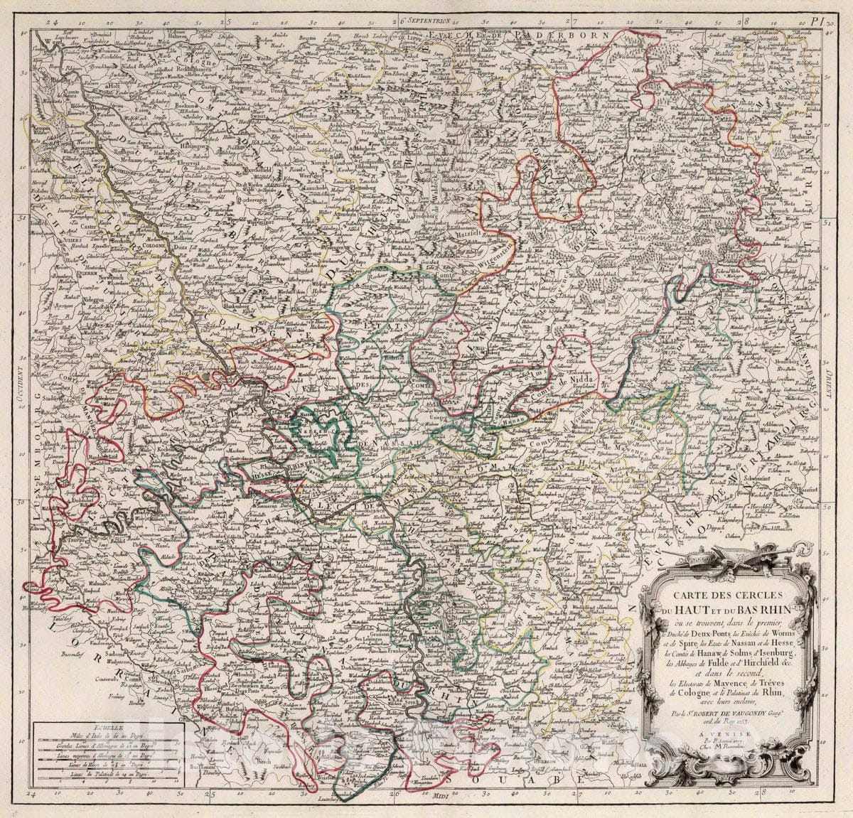 Germany, 30. Carte des Cercles du Haut et du Bas Rhin, 1777 Atlas , Vintage Wall Art