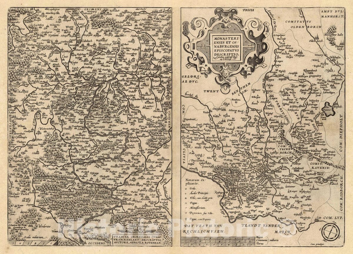 Historic Map : Germany, (67) Franciae (with) Monasteriensis Et Osnaburgensis, 1608 Atlas , Vintage Wall Art