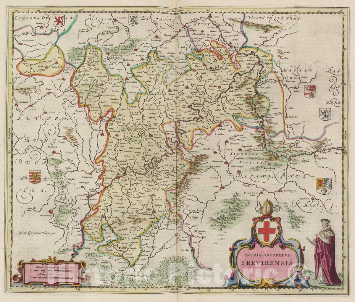 Germany, Archiepiscopatvs Trevirensis, 1665 Atlas , Vintage Wall Art
