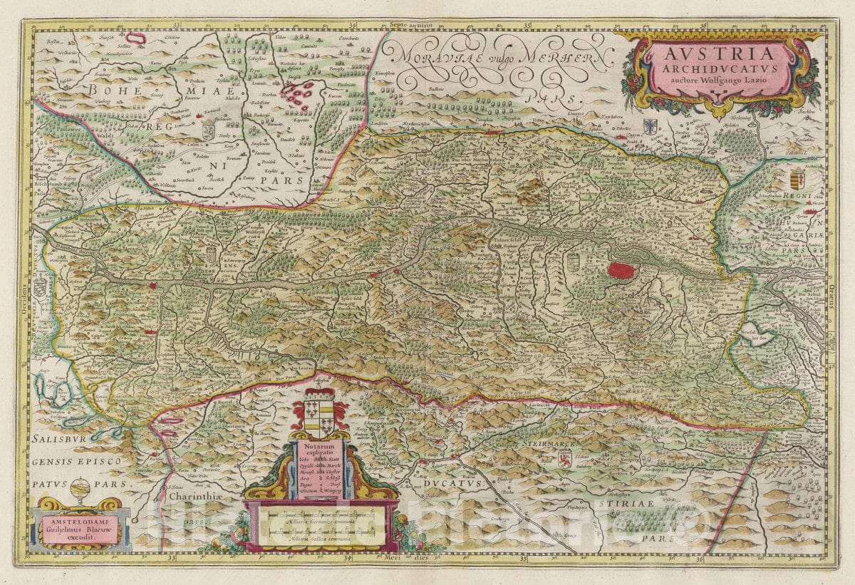 • .Historic Map : Germany, Atlas Maior Sive Cosmographia Blaviana, Qua Solvm, Salvm, Coelvm, Accvratissime Describvntvr. Avstria Archidvcatvs , Vintage Wall Art