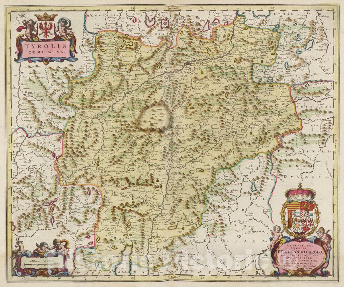Historic Map : Germany, Atlas Maior Sive Cosmographia Blaviana, Qua Solvm, Salvm, Coelvm, Accvratissime Describvntvr. Tyrolis Comitatvs, Atlas, Vintage Wall Art
