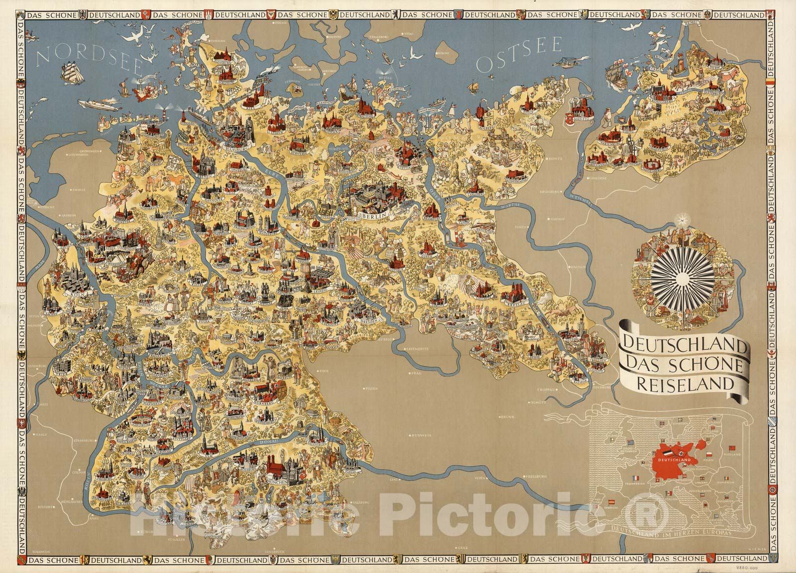 Historic Map : Germany, the Beautiful Holiday Destination. 1935 - Vintage Wall Art