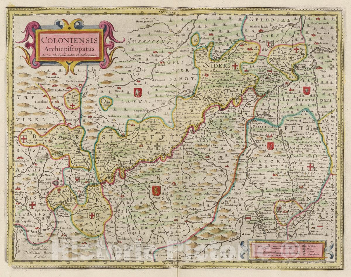 • .Historic Map : Germany, Coloniensis Archiepiscopatus, 1665 Atlas , Vintage Wall Art