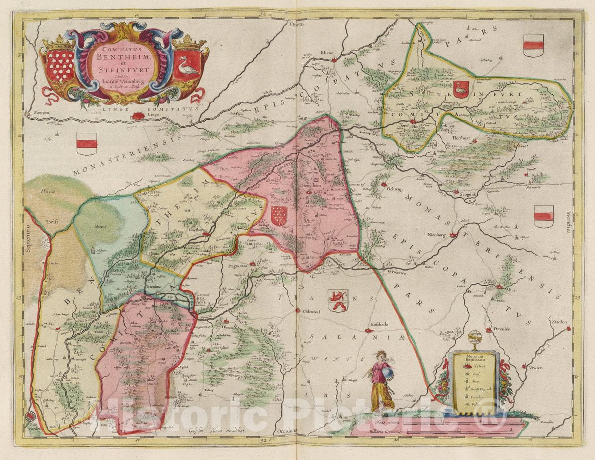 • Historic Map : Germany, Comitatvs Bentheim et Steinfvrt, 1665 Atlas , Vintage Wall Art