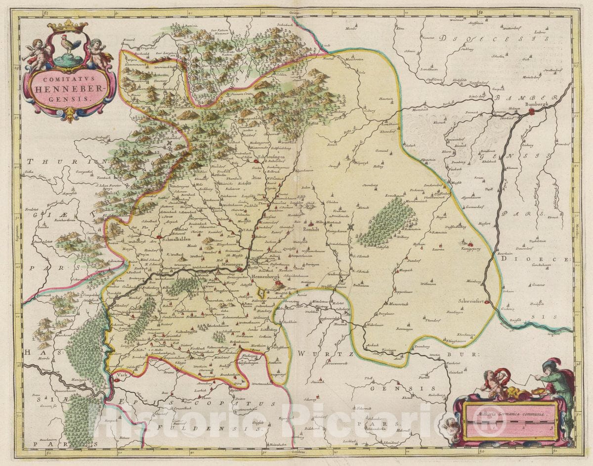 Germany, Comitatvs Hennebergensis, 1665 Atlas , Vintage Wall Art
