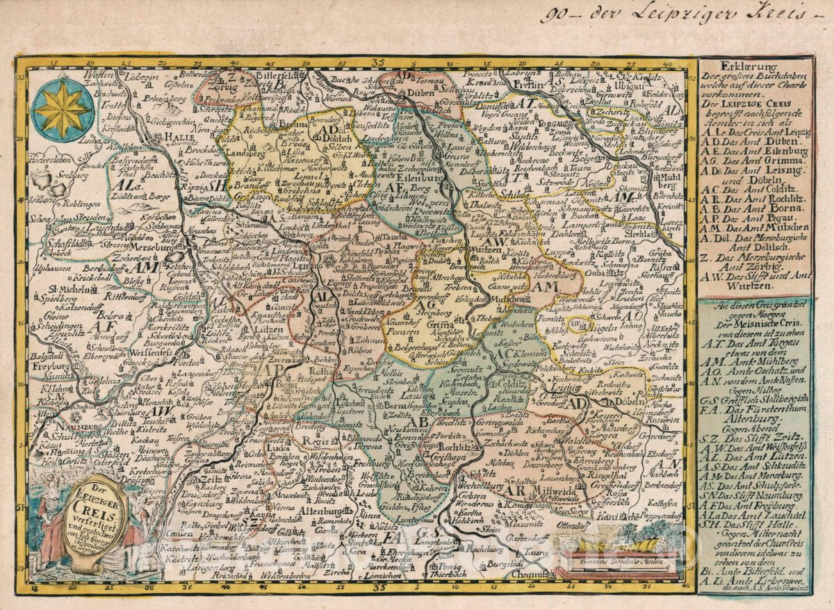 Germany, Der Leipziger Creis : verfertiget und gestochen von Joh. George Schreibers in Leipzig, 1740 Atlas , Vintage Wall Art