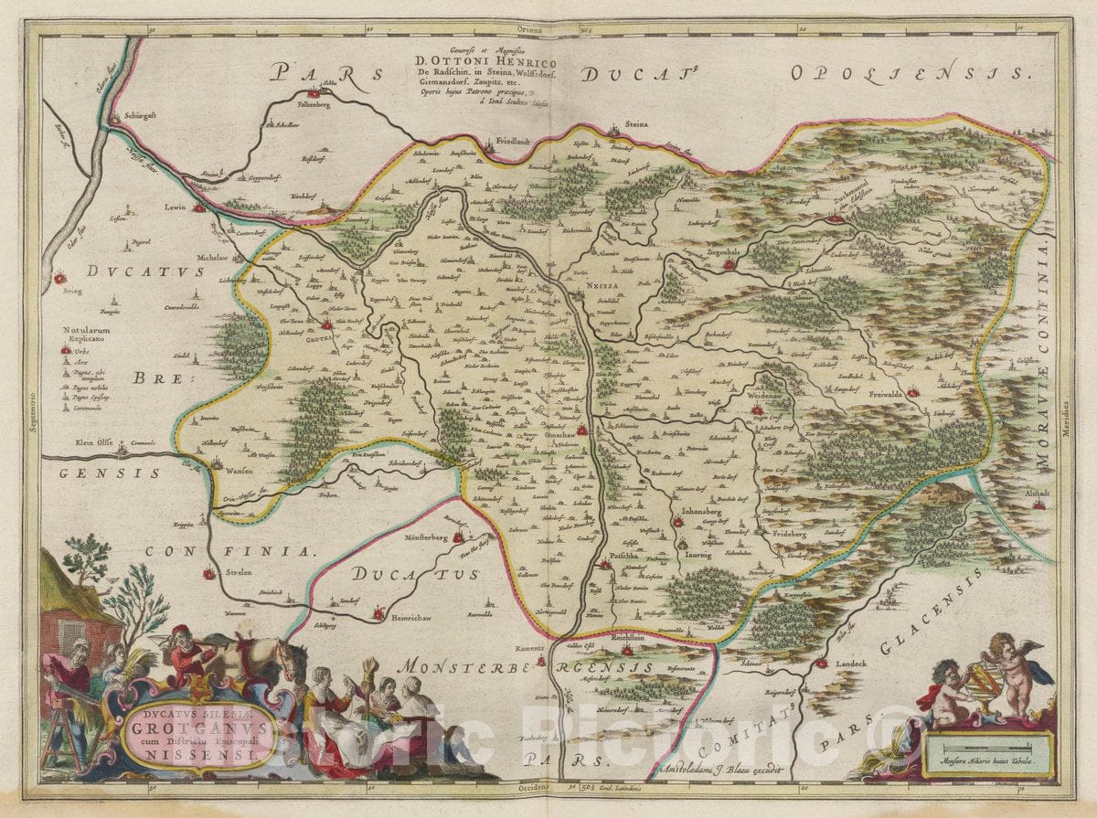 Historic Map : Germany, Dvcatvs Silesiae Grotganvs, 1665 Atlas , Vintage Wall Art
