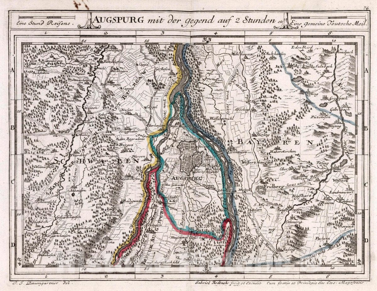 Historic Map : Germany, , Europe Augspurg mit der gegend auf Zwei stunden etc, 1716 Atlas , Vintage Wall Art