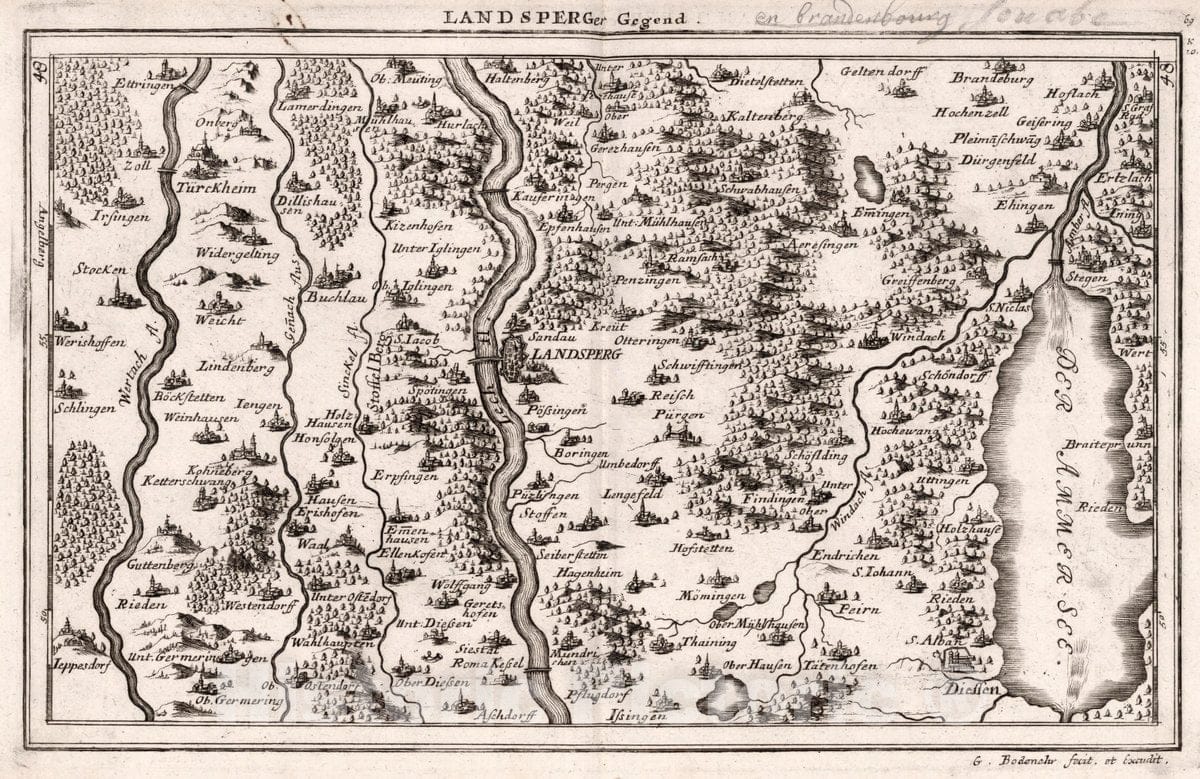 Historic Map : Germany, , Europe Landsperger Gegend. G. Bodenehr fecit et Excudit. (to accompany)Curieux Oder Neuer und Compendieuser Atlas. 69, 1716, Vintage Wall Art