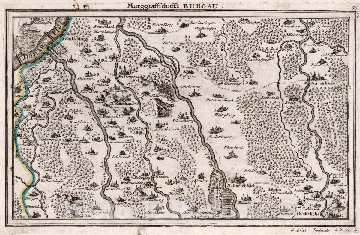 Historic Map : Germany, , Europe Marggraffschafft Burgau. Gabriel, Bodenehr, 1716, Vintage Wall Art