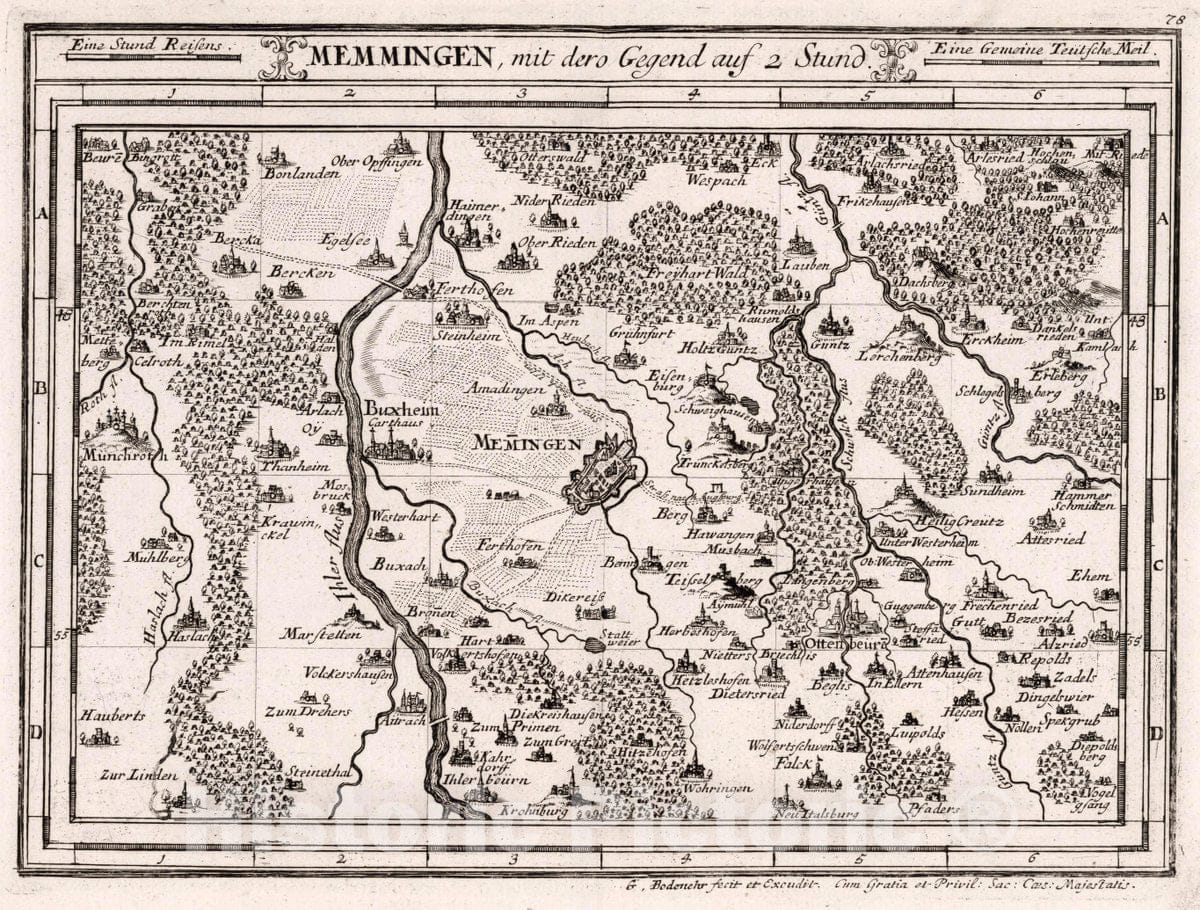 Historic Map : Germany, , Europe Memmingen, mit dero Gegend auf Zwei Stund, 1716 Atlas , Vintage Wall Art
