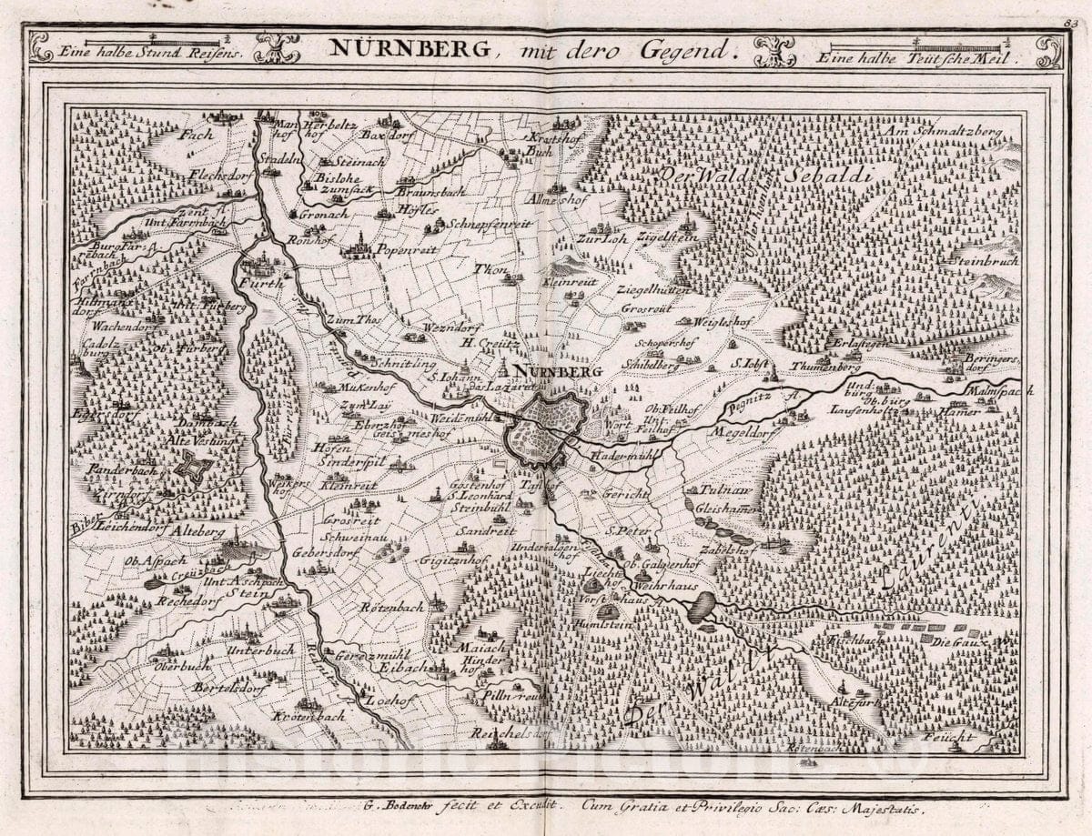 Historic Map : Germany,, Europe Nurnberg mit dero Gegend. G. Bodenehr fecit et Excudit. Cum Gratia et Privilegio Sac. Caes. Majestatis, 1716 Atlas, Vintage Wall Art