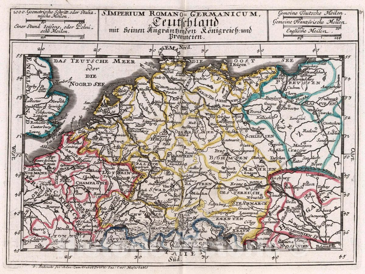 • .Historic Map : Germany, , Europe S. Imperium Romano-Germanicum, 1716 Atlas , Vintage Wall Art