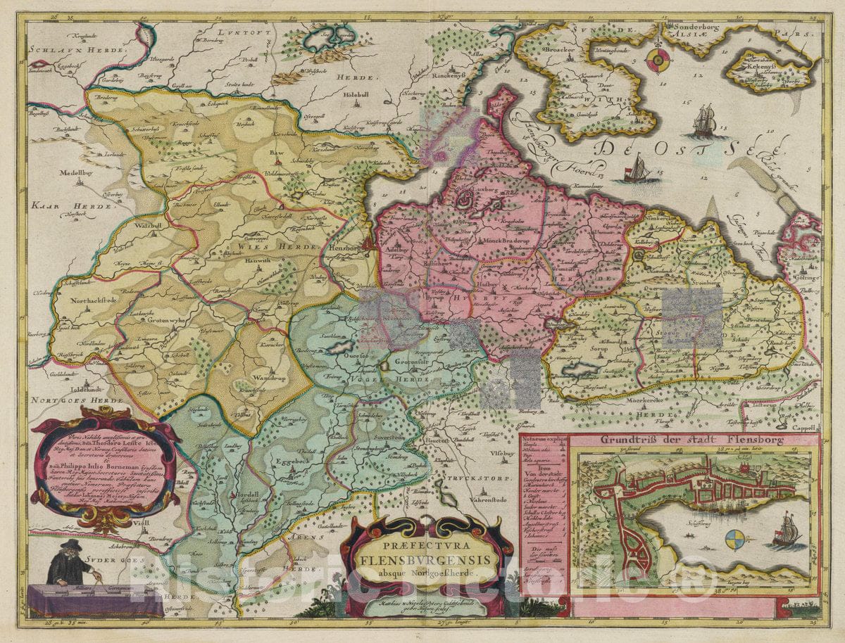 Historic Map : Germany , Flensburg Germany, Pr?ectvra Flensbvrgensis, 1665 Atlas , Vintage Wall Art