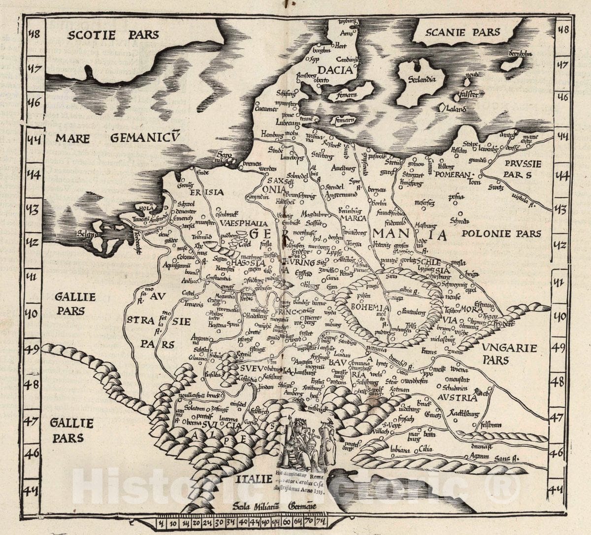 Historic Map : Germany, (Germania). De Boemia. Claudii Ptolemaei Alexandrini Geographicae , 1541, Vintage Wall Art