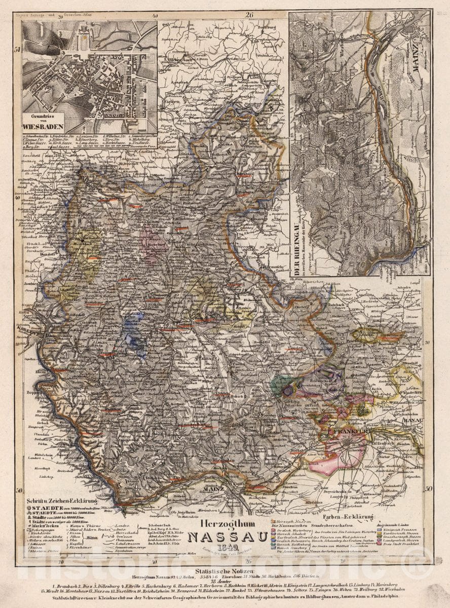 Historic Map : Germany, Herzogthum Nassau 1849. Entw. u. gez. von Carl Hoeckner. Stahlstich (Direction v. Kleinknecht), 1849 Atlas , Vintage Wall Art