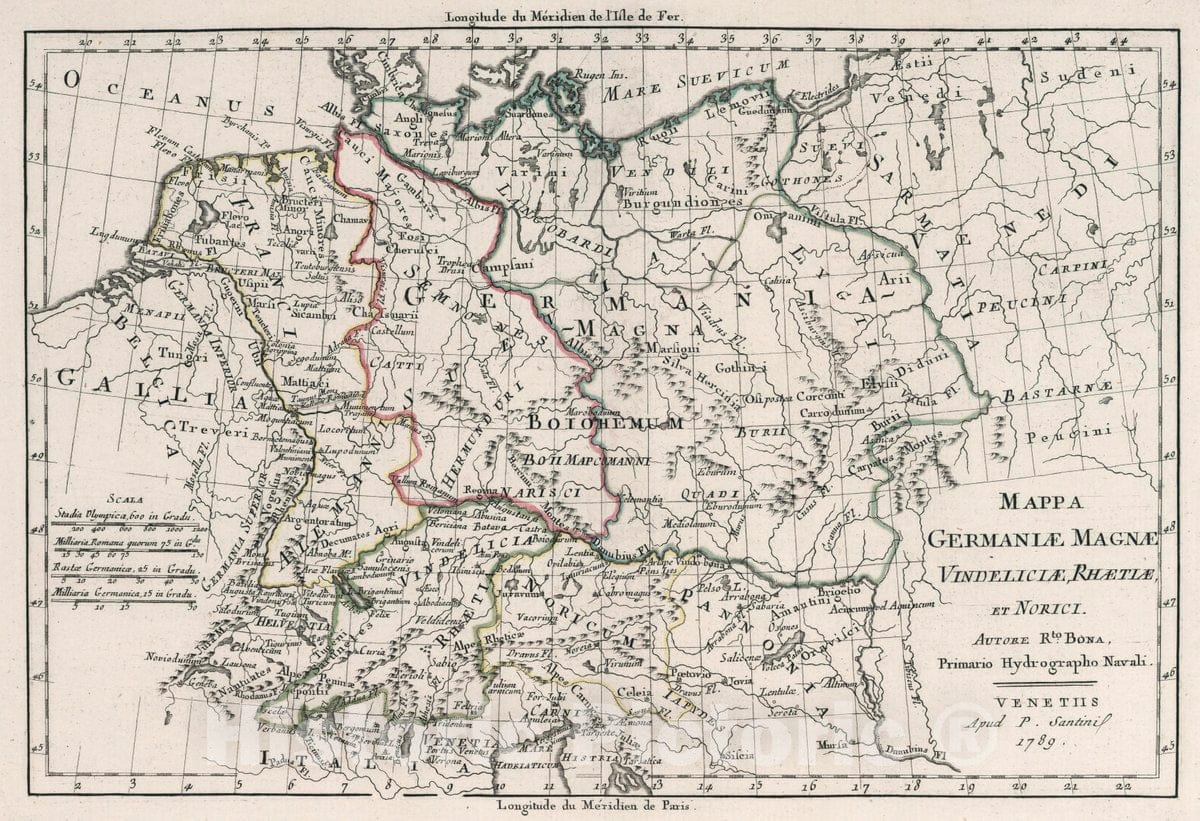 Historic Map : Germany, Mappa Germaniae magnae, Vindeliciae, Rhaetiae et Norici, 1789 Atlas , Vintage Wall Art