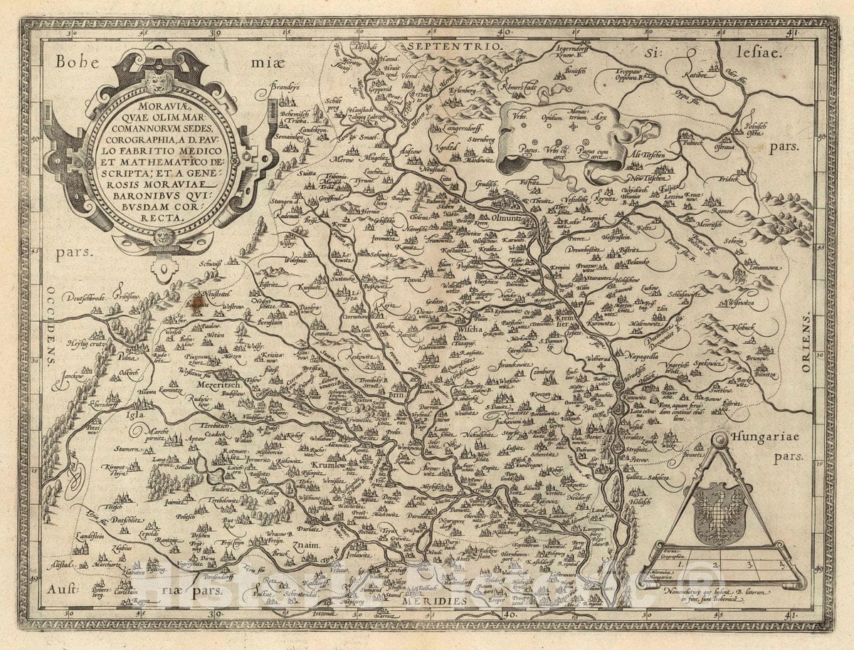 Germany, Moraviae, Quae Olim Mar: Comannorum Sedes, Corographia, A D. Pavlo Fabritio Medico Et Mathematico Descripta, 1608 Atlas , Vintage Wall Art