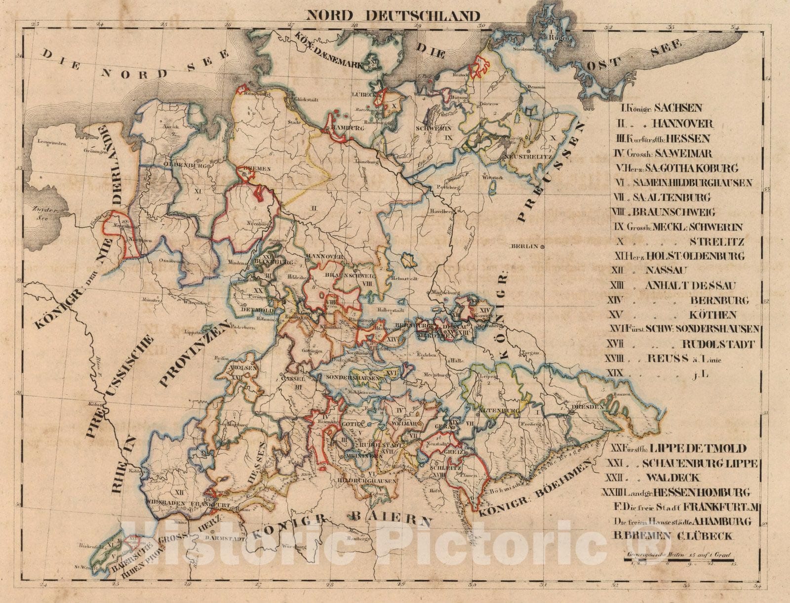 • .Historic Map : Germany, National Atlas Map, V. 2:6-10: VII: Nord Deutschland 1825 , Vintage Wall Art