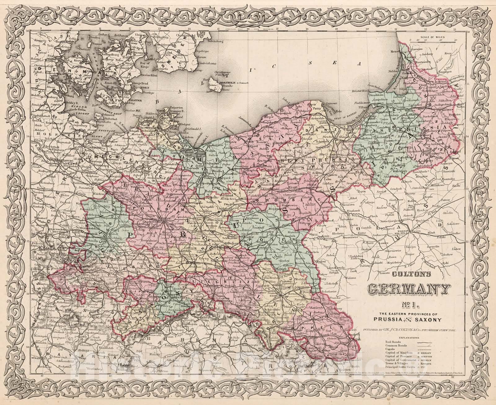 • .Historic Map : Germany No. 1. Eastern Provinces of Prussia and Saxony., 1880, Vintage Wall Decor
