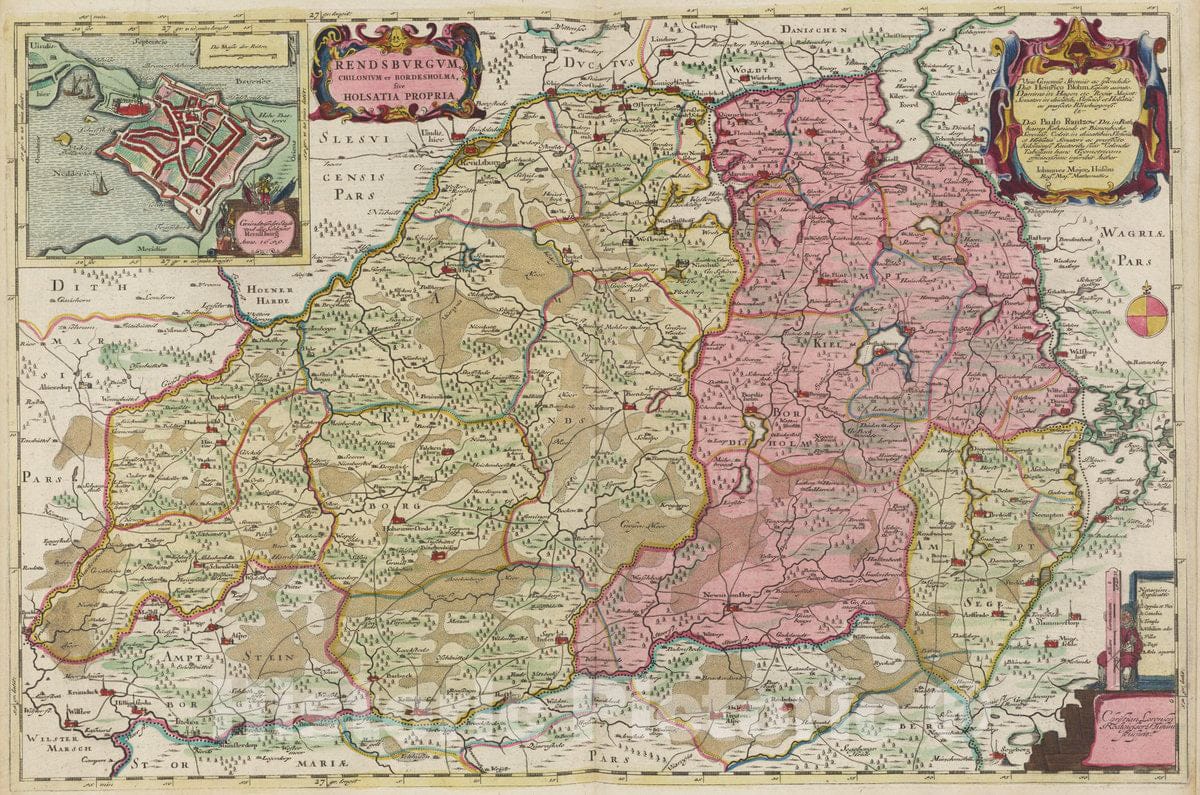 Historic Map : Germany, Rendsbvrgvm, Chilonivm et Bordesholma, 1665 Atlas , Vintage Wall Art