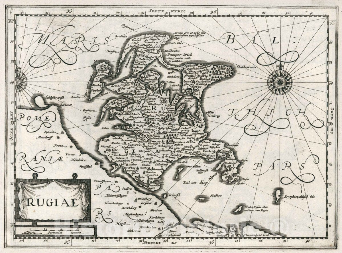 • Historic Map : Germany, Rugiae. Atlas sive Cosmographicae Meditationes de Fabrica Mundi et fabricati Figura, 1636 Atlas , Vintage Wall Art