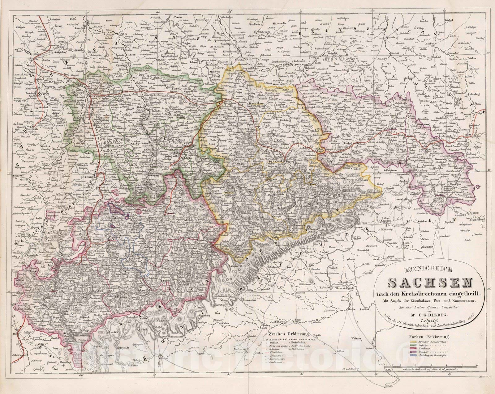 Historic Map : Germany, Saxony , Germany 1846 Koenigreich Sachsen nach den Kreisdirectionen eingetheilt , Vintage Wall Art