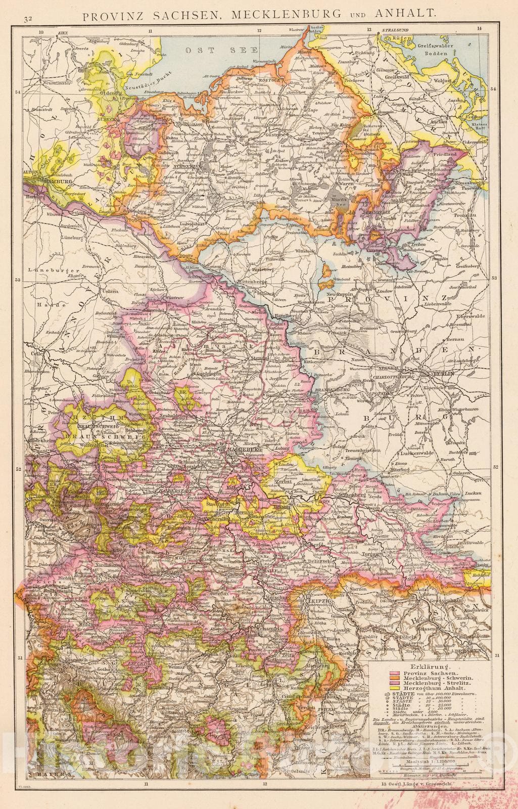 Germany, Saxony , Germany 1881 Sachsen, Mecklenburg, Anhalt. , Vintage Wall Art