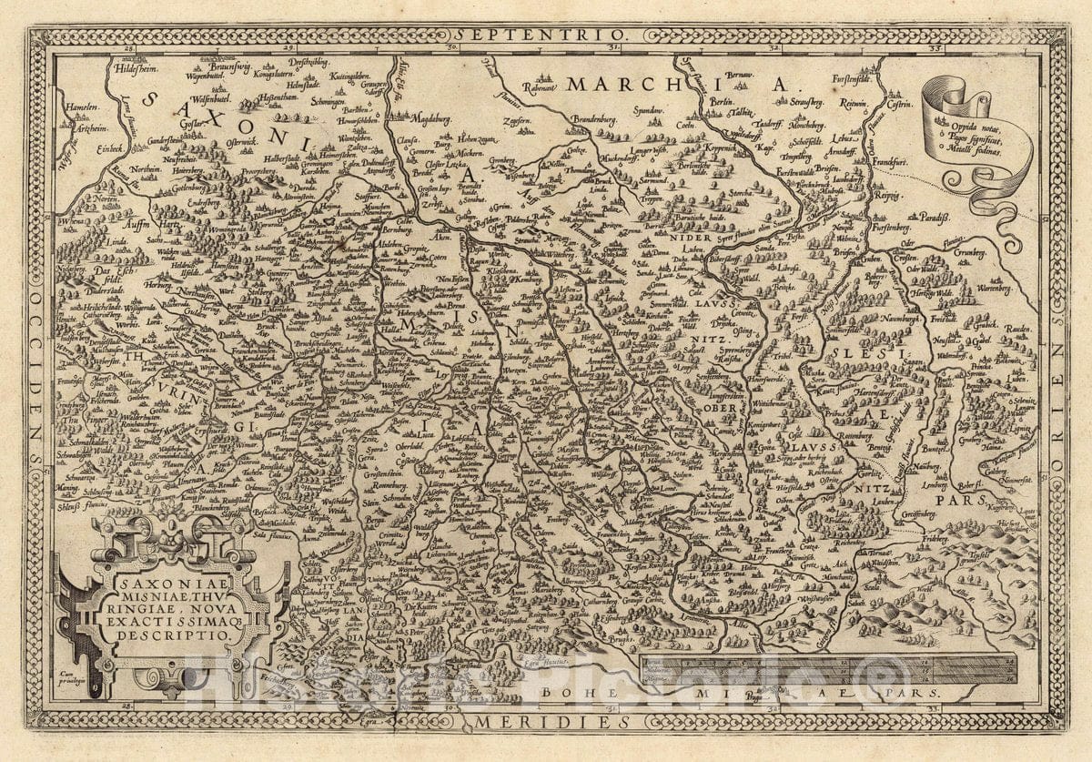 Germany, Saxony , Germany Saxoniae Misnae, Thuringiae, Nova Exactissimaqa Descriptio. Cum Privilegio, 1608 Atlas , Vintage Wall Art