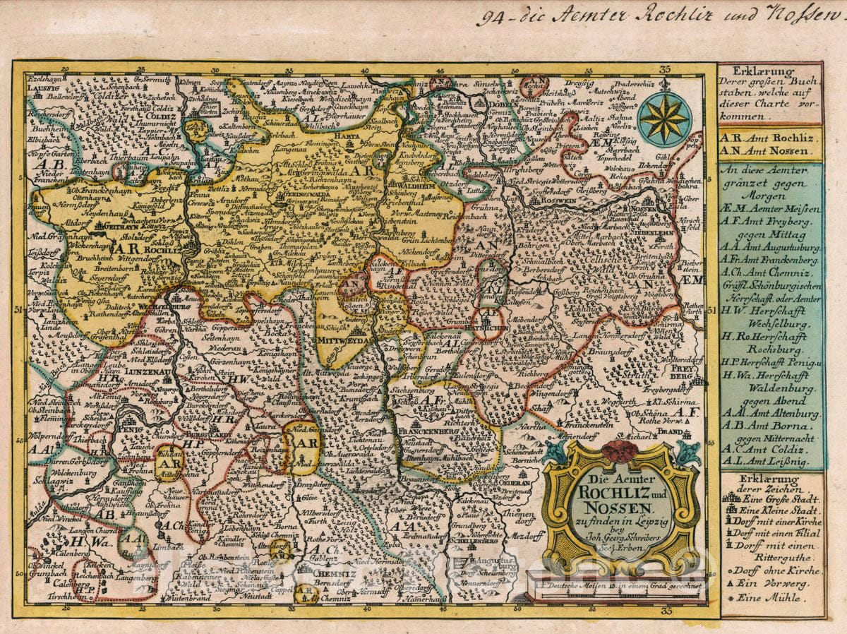 • .Historic Map : Germany, Saxony , Germany Vol 2:94- Die Aemter Rochliz und Nossen, 1740 Atlas , Vintage Wall Art