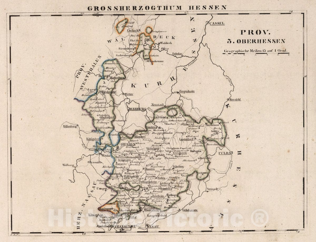 Historic Map : Germany, V. 2:6-10: VI: III. Grossherzogthum Hessen. Prov: 3. Oberhessen , Vintage Wall Art