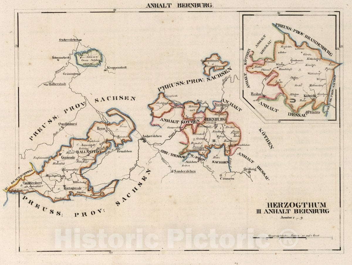Historic Map : Germany, V.2:6-10:VIII. Anhalt Bernburg. Herzogthum. III. Anhalt Bernburg, 1825 Atlas , Vintage Wall Art