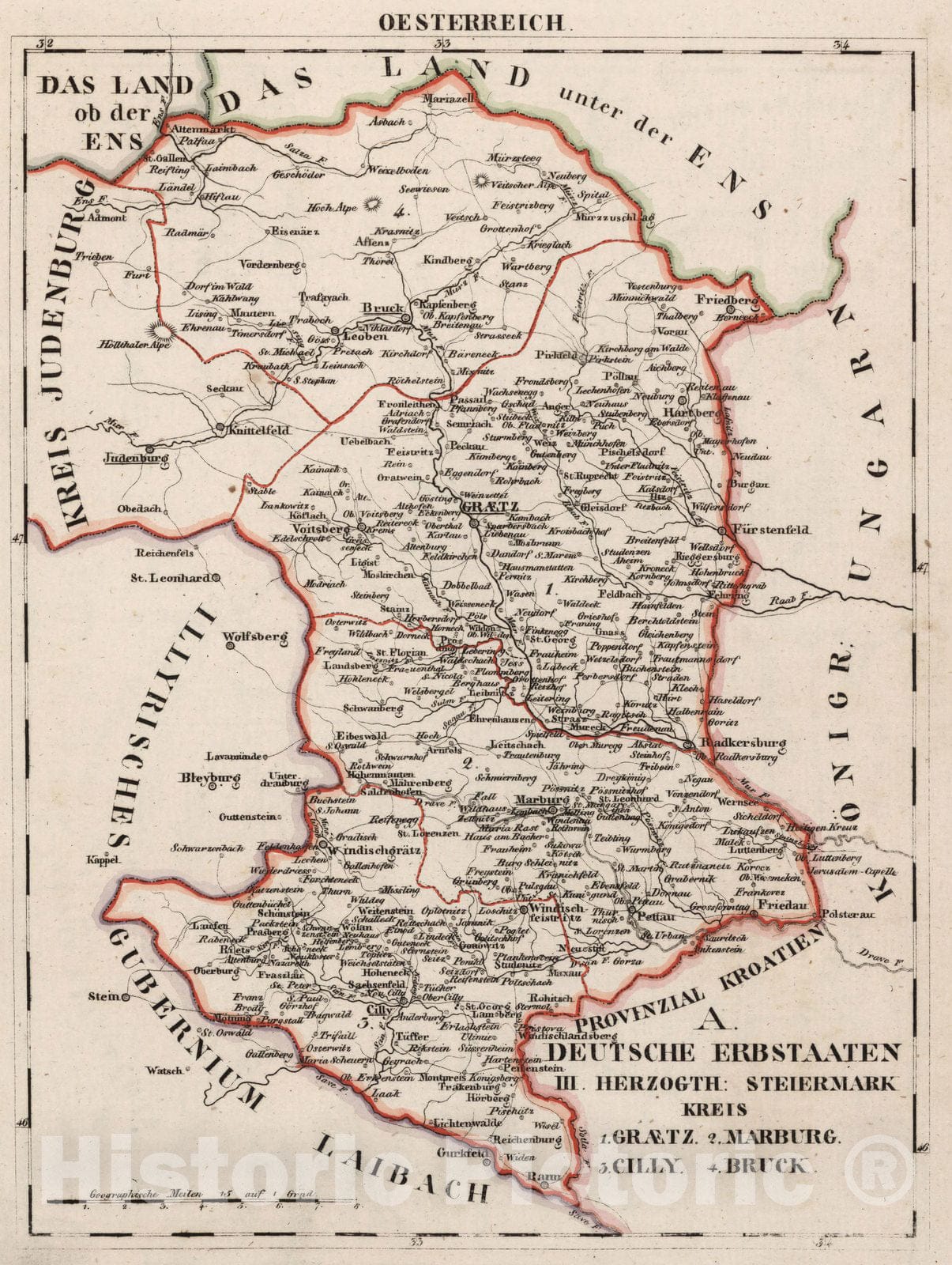 Historic Map : Germany, V.3:11-15:XI:1. Oesterreich. A. Deutsche Erbstaaten. III. Herzogth: Steiermark kreis 1828 , Vintage Wall Art