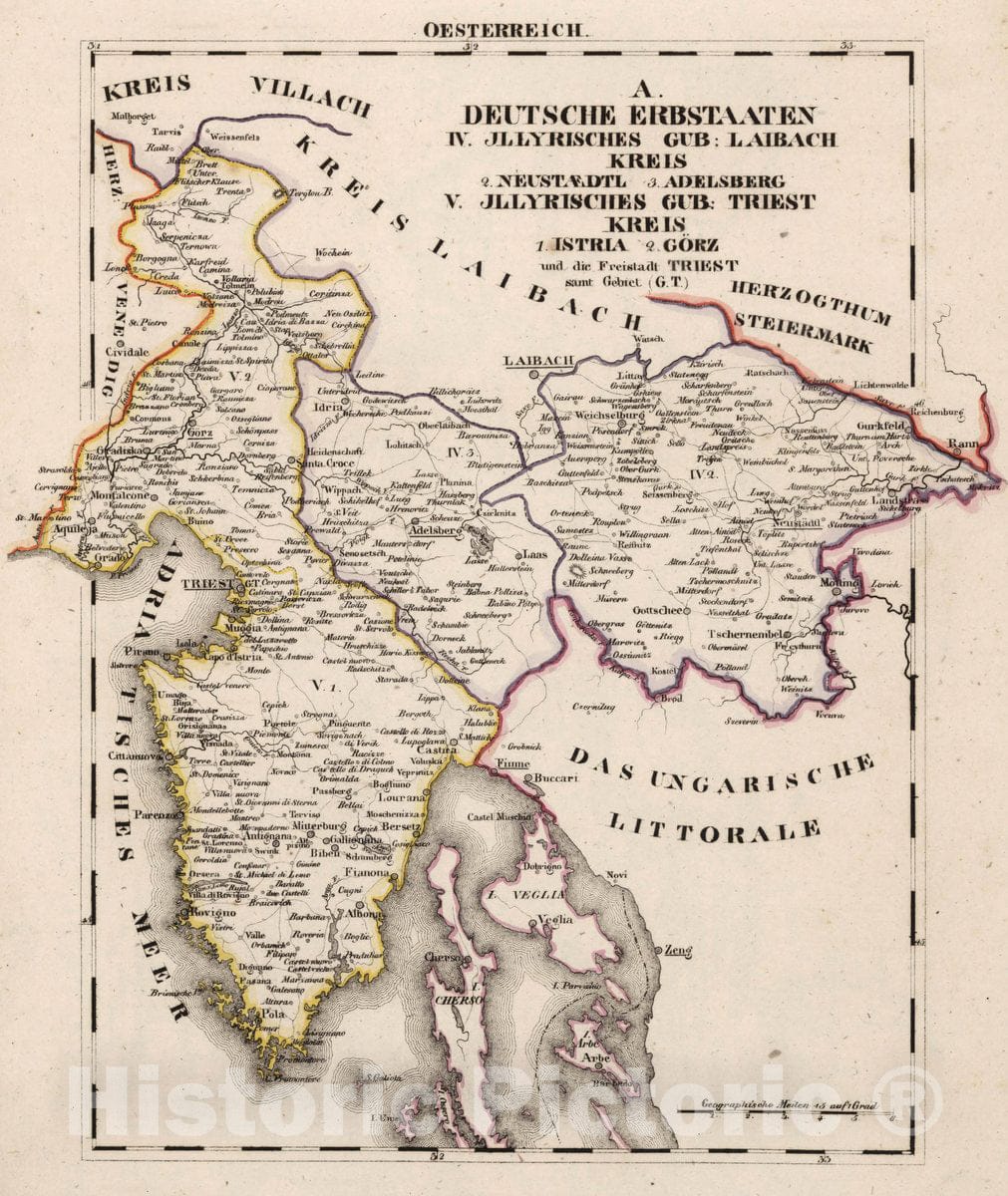 Germany, V.3:11-15:XI:1. Oesterreich. A. Deutsche Erbstaaten. IV-V. Illyrisches Gub, 1828 Atlas , Vintage Wall Art