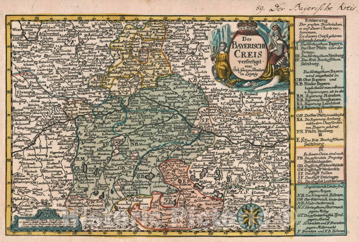 Historic Map : Germany, Vol 1:59- Das Bayerische Creis, 1740 Atlas , Vintage Wall Art