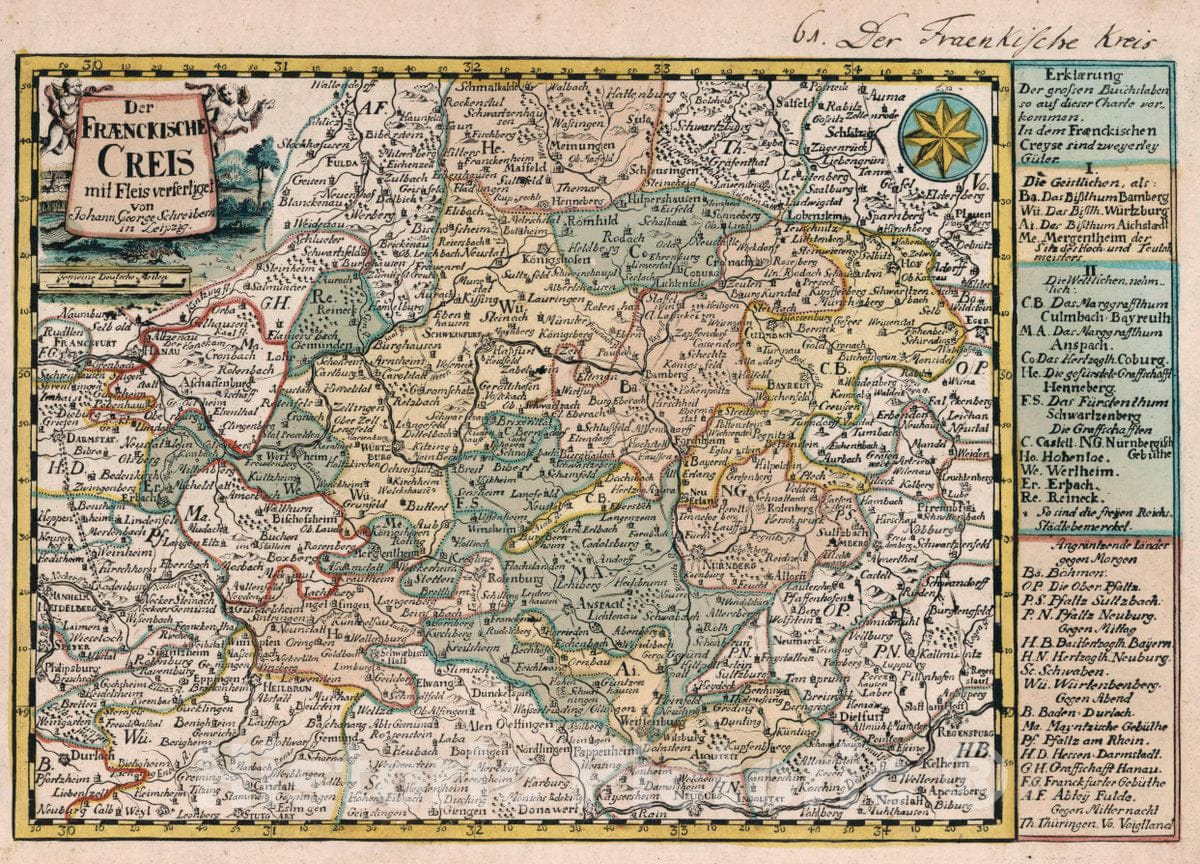• .Historic Map : Germany, Vol 1:61- Der Fraenckische Creis, 1740 Atlas , Vintage Wall Art