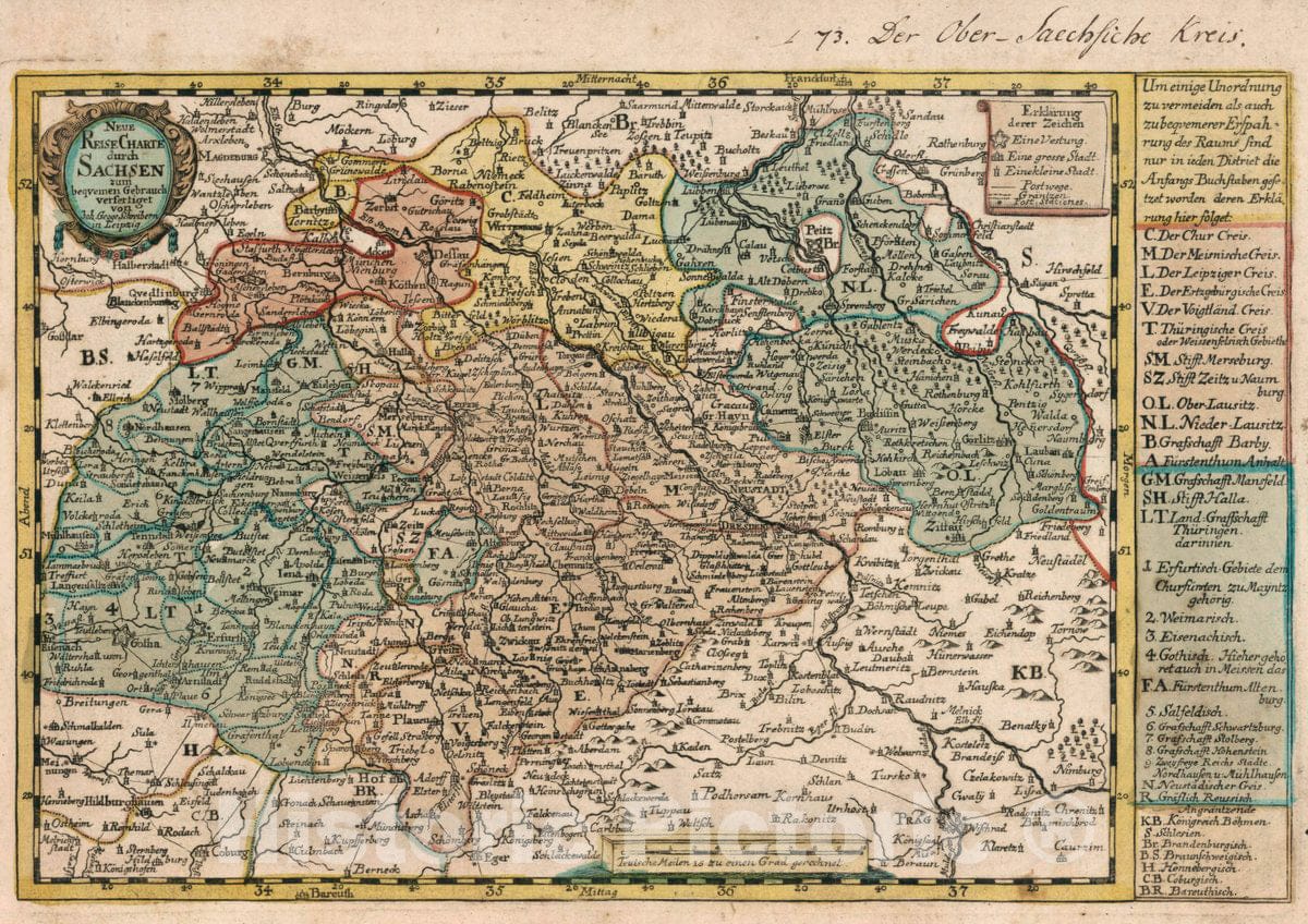 Germany, Vol 1:73- Neue Reise Charte durch Sachsen, 1740 Atlas , Vintage Wall Art