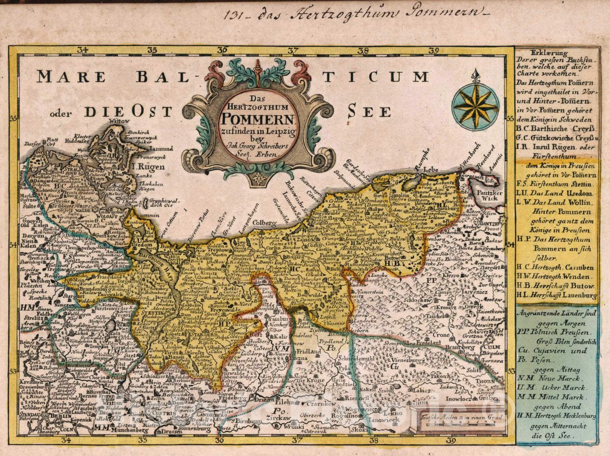 Historic Map : Germany, Vol 2: 131- Das Hertzogthum Pommern, 1740 Atlas , Vintage Wall Art