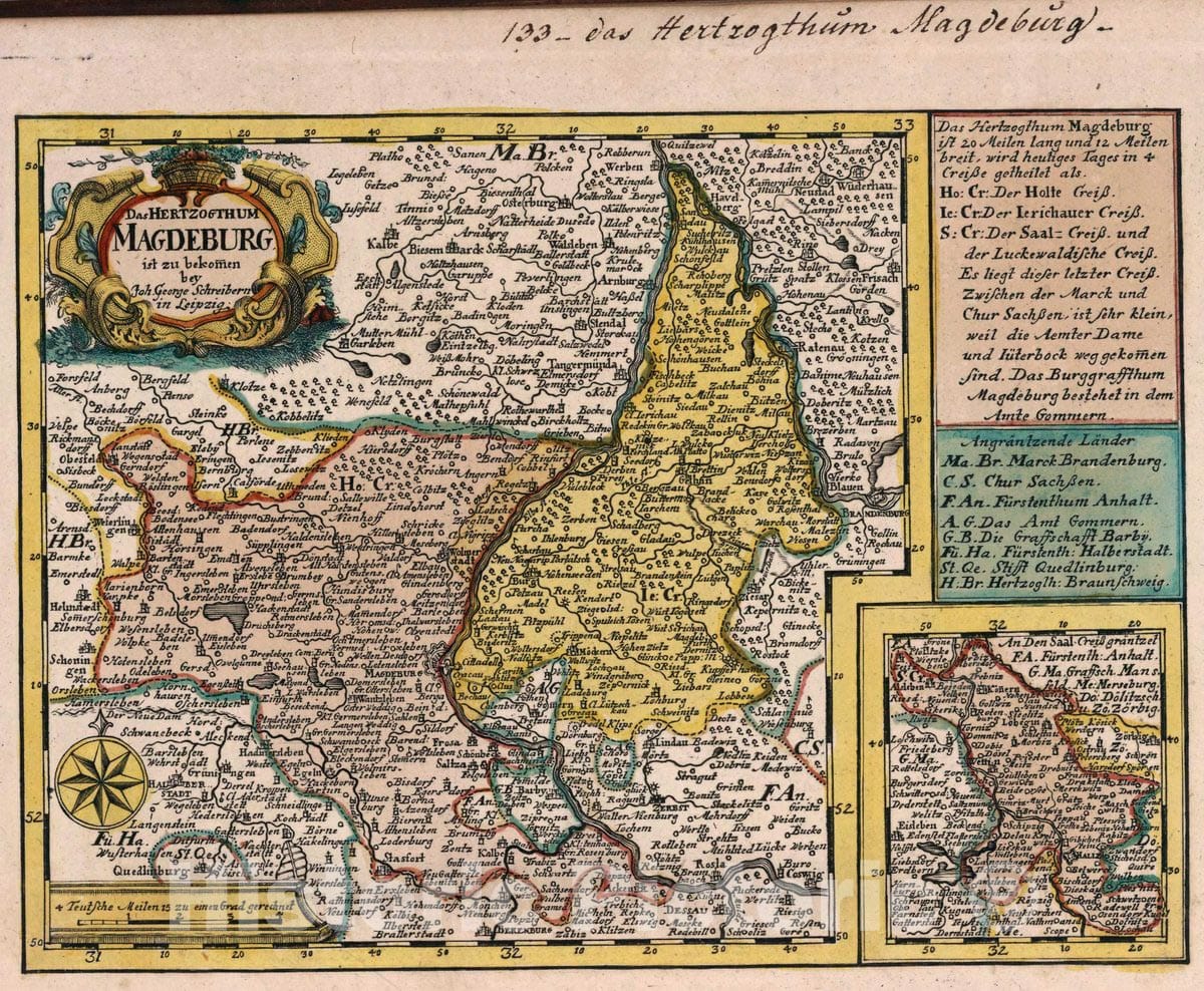 Historic Map : Germany, Vol 2: 133- Das Hertzogthum Magdeburg, 1740 Atlas , Vintage Wall Art