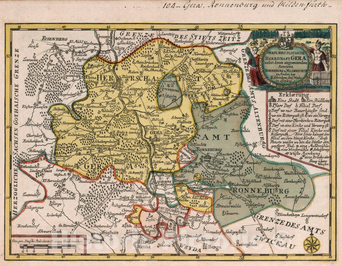 • Historic Map : Germany, Vol 2:104- Graefl. Reus Plauische Herrschaft Gera, 1740 Atlas , Vintage Wall Art
