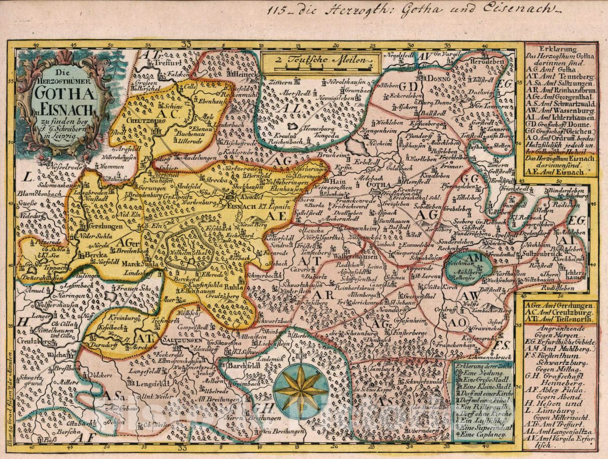 Historic Map : Germany, Vol 2:115- Die Herzogthumer Gotha u. Eisnach, 1740 Atlas , Vintage Wall Art