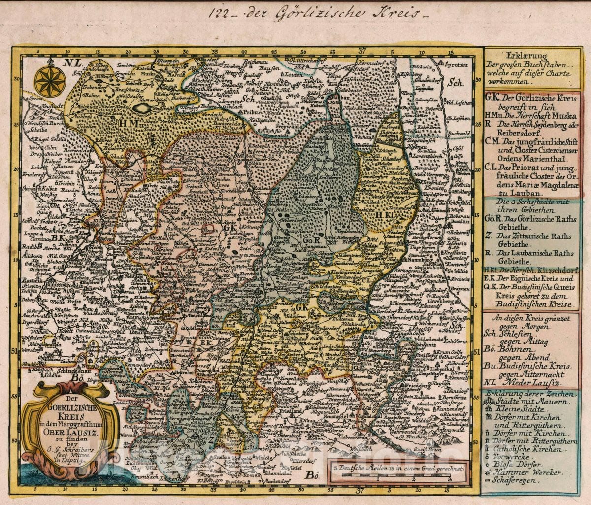 Historic Map : Germany, Vol 2:122- Der Budissinische Kreis in dem Marggrafthum Ober-Lausiz, 1740 Atlas , Vintage Wall Art