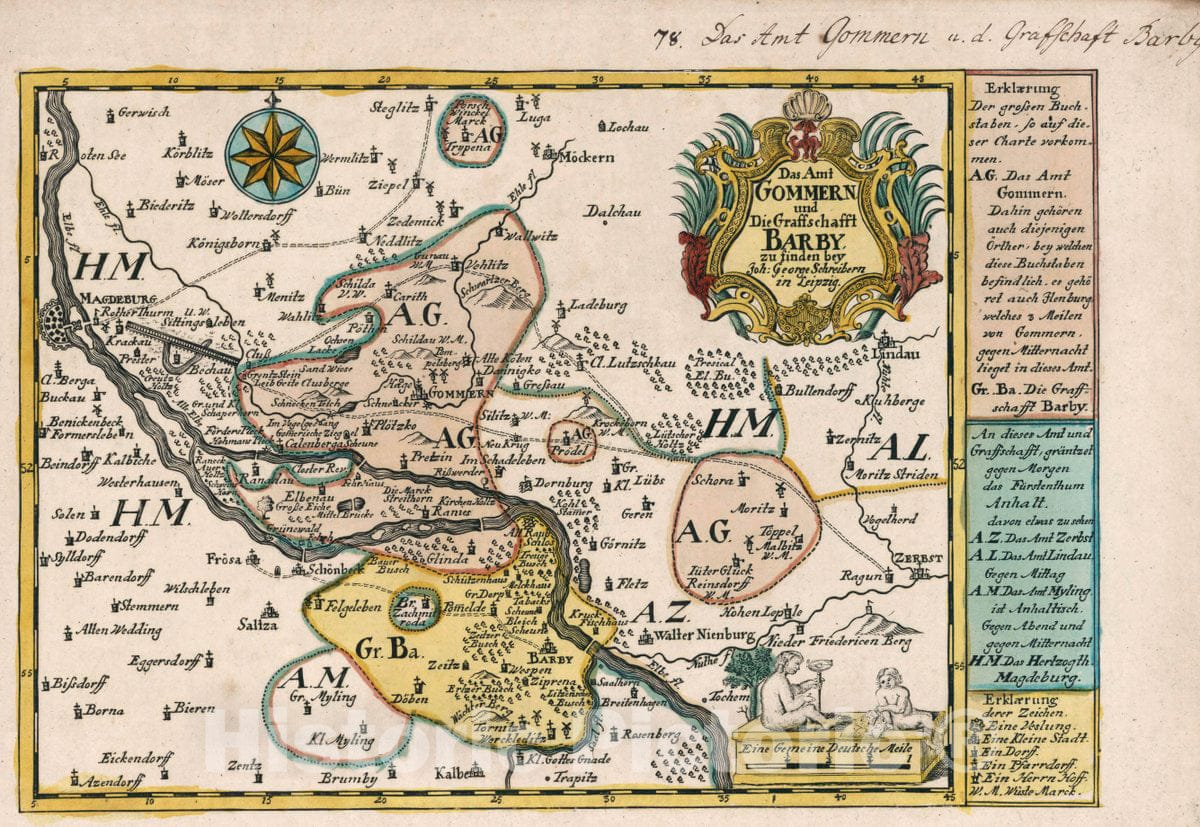 Historic Map : Germany, Vol 2:78- Das Amt Gommern und Die Graffschafft Barby, 1740 Atlas , Vintage Wall Art