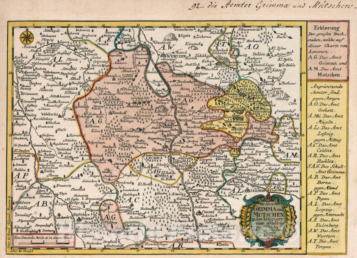 • .Historic Map : Germany, Vol 2:92- Die Aemter Grimma und Mutschen, 1740 Atlas , Vintage Wall Art