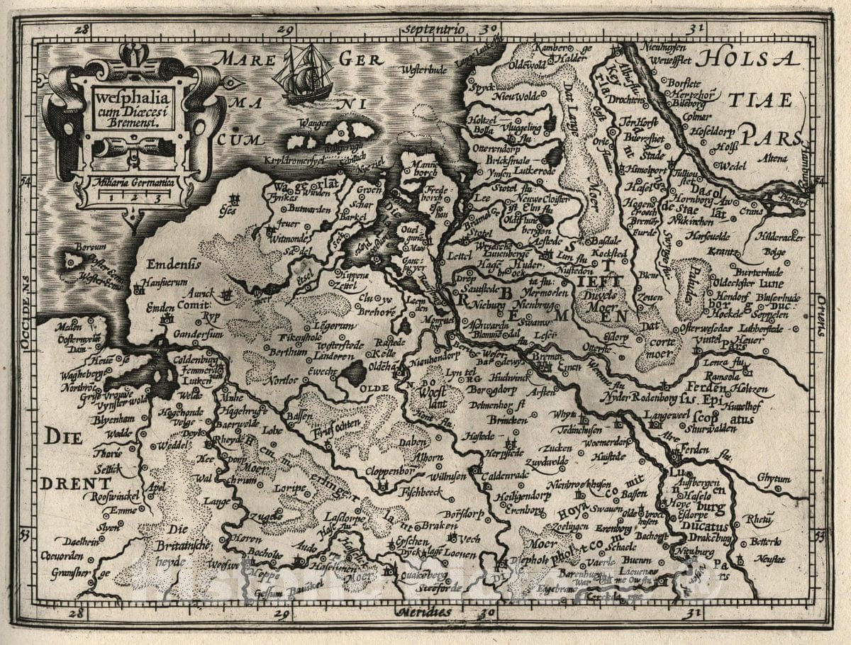 Historic Map : Germany, Westfalia Cum Diocesi Bremensi, 1607 Atlas , Vintage Wall Art