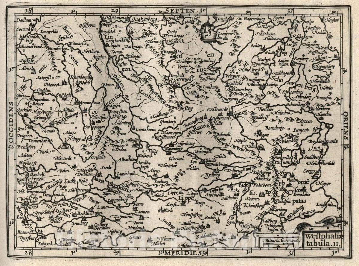 • .Historic Map : Germany, Westfaliae Tabula II. (to accompany) Atlas Minor Gerardi Mercatoris, 1607 Atlas , Vintage Wall Art